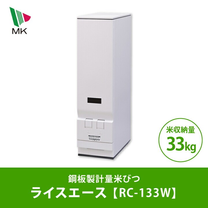 エムケー精工 鋼板製 計量米びつ ライスエース RC-133W 計量 米びつ 米収納量 33kg スリム 残量確認 無洗米アタッチメント 2レバータイプ 幅210mm ストッパー付 おしゃれ 耐腐食性 同梱不可