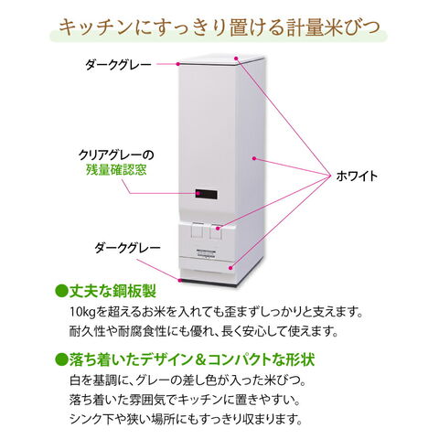 エムケー精工 鋼板製 計量米びつ ライスエース RC-133W 計量 米びつ 米収納量 33kg スリム 残量確認 無洗米アタッチメント 2レバータイプ 幅210mm ストッパー付 おしゃれ 耐腐食性 同梱不可のレビュー