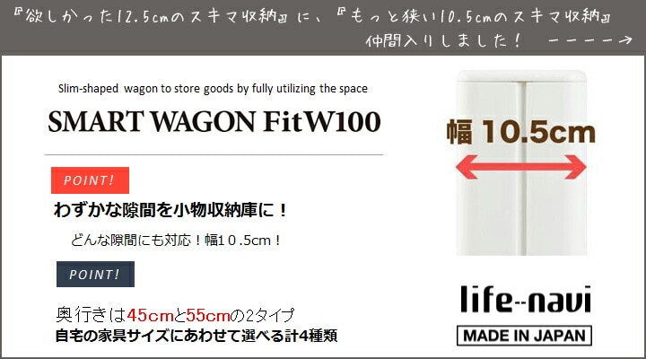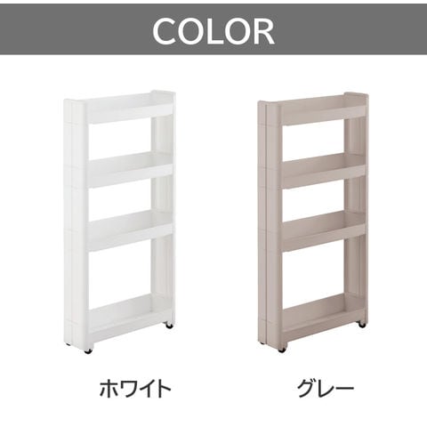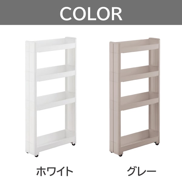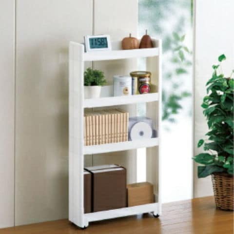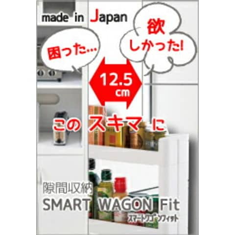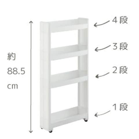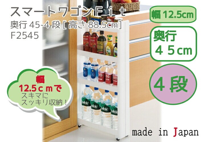 【すきま収納】 幅12.5cm スマートワゴン Fit F2545 45-4段 かんたん組立式 コロ付き 隙間に収まる 不動技研キャスター付き リビング 壁面収納 アイデア収納 日本製 【くらし屋】 // ホワイト 013275