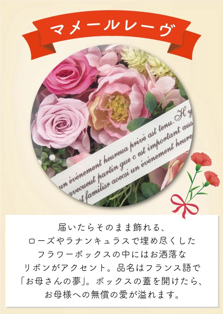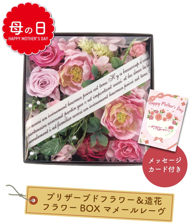 【販売受付中※4月23日まで】母の日 プリザーブドフラワー &造花 フラワーBOX マメールレーヴ 1851-99524-MD-02 花 フラワーアレンジ フラワーボックス 生花 インテリア 母 義母 お母さん 母の日ギフトメッセージカード付き 日本製 送料無料 同梱不可