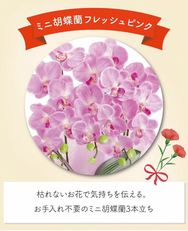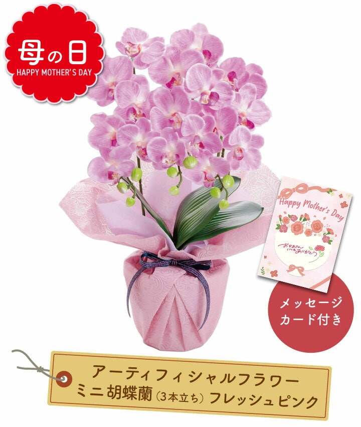【販売受付中※4月23日まで】母の日 アーティフィシャルフラワー ミニ胡蝶蘭3本立ち フレッシュピンク 1852-113花 造花 胡蝶蘭 SC触媒 インテリア消臭 抗菌 母 義母 お母さん 母の日ギフトメッセージカード付き 日本製 送料無料 同梱不可