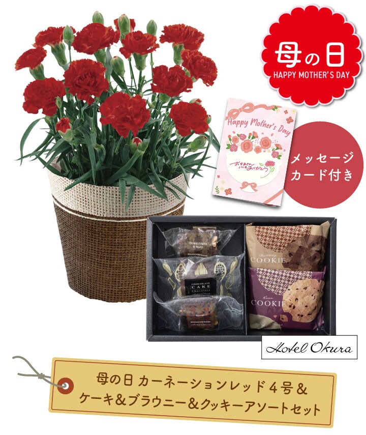 カーネーション 花 お花 フラワー flower 生花 花束 鉢植え 鉢花 花鉢 鉢 4号 4号 4号鉢 4号鉢 4号サイズ 4号サイズ フラワーギフト レッド 赤 お菓子 スイーツ デザート 甘味 甘い物 おやつ 食品 食べ物 グルメ 焼き菓子 焼菓子 洋菓子 ケーキ ブラウニー クッキー レーズン チョコチップ ドライフルーツ ナッツ チョコレート 詰め合わせ 詰合せ アソート 銘菓 本場 高級 上品 ティータイム ブランド 個包装 小分け お取り寄せ 美味しい おいしい 本格的 本格派 本物志向 こだわり 素材 ホテルオークラ ホテル セット お花とお菓子 お花とお菓子のセット ギフト プレゼント 贈り物 母の日 mother's day 母の日ギフト 母の日プレゼント 母 お母さん おかあさん 義母 お義母さん ママ 感謝 ありがとう いつもありがとう 感謝の気持ち メッセージ カード メッセージカード付き きれい キレイ 綺麗 美しい 豪華 華やか 華美 かわいい カワイイ 可愛い おしゃれ オシャレ お洒落 明るい 素敵 すてき ステキ 飾れる 飾る 置く リビング 居間 玄関 エントランス 庭 ガーデン 室内 屋外 定番 定番ギフト 嬉しい 喜ばれる 幅広い年代 花持ちがいい アピデ apide 送料無料