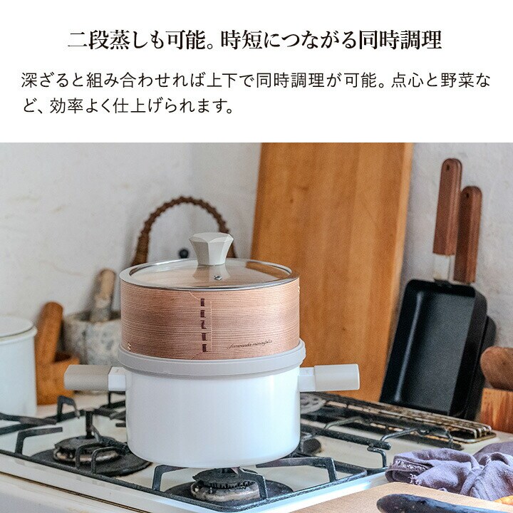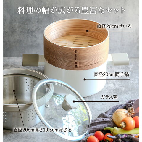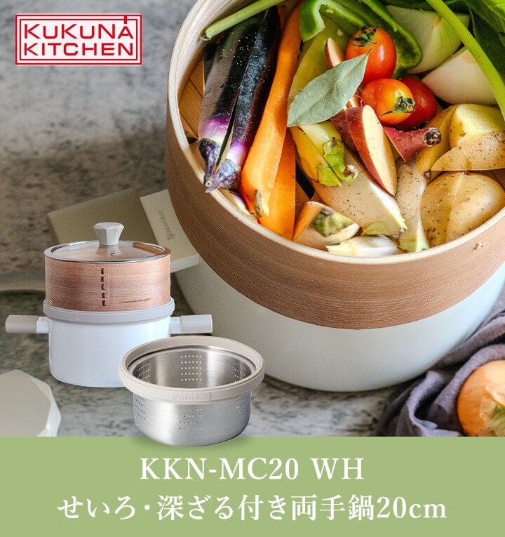 せいろ・深ざる付き両手鍋 20cm KKN-MC20 WH ククナキッチン 鍋 両手 蒸し セット ガス IH