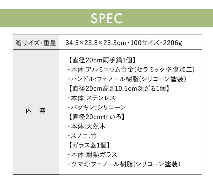 せいろがセットで蒸し料理が出来、料理の幅が一気に広がります。