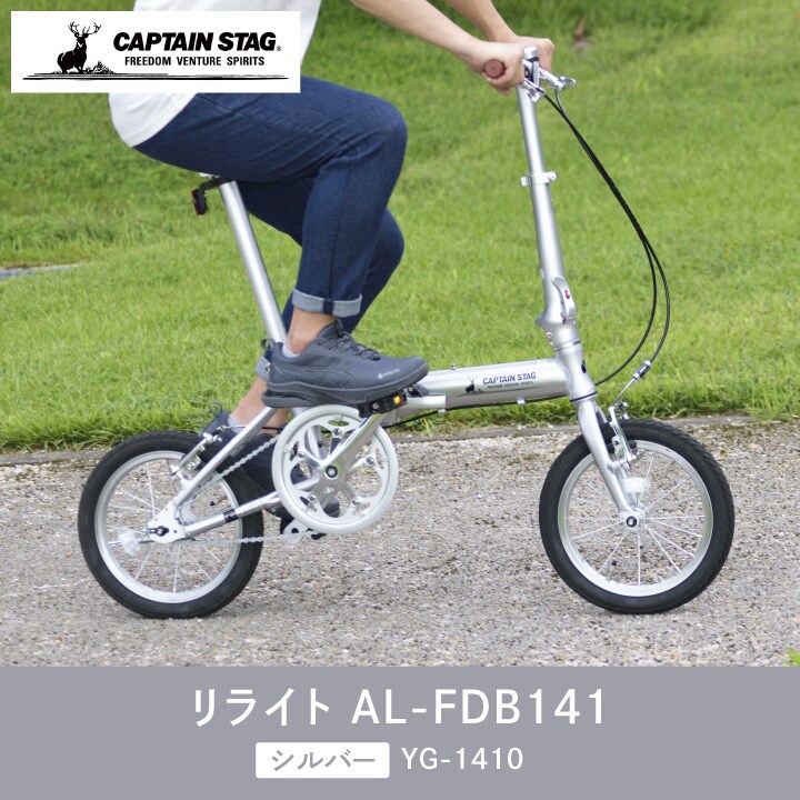 キャプテンスタッグ リライト AL-FDB141 シルバー 折りたたみ自転車 YG-1410 アウトドア 街乗り コンパクト 持ち運び 14インチ 軽い 小さい 省スペース アウトドア用品 レジャー 同梱不可