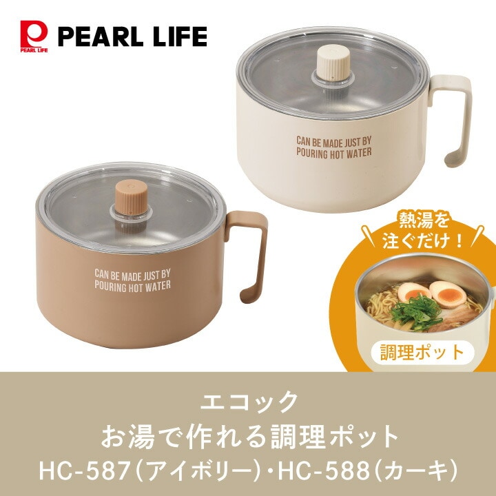 エコック お湯で作れる調理ポット パール金属 HC-587 アイボリー 真空二重構造 真空二重 容器 保温調理鍋 ラーメン パスタ 麺 野菜 ゆで卵 温泉卵 便利 キッチン 調理 料理 節約 簡単