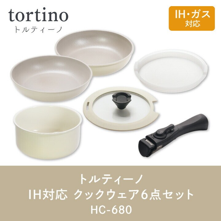 トルティーノ IH対応 クックウェア 6点セット HC-680 パール金属 IH ガス ガス火 オーブン 対応 取っ手 外せる フライパン 鍋 省スペース 収納 重ねて収納 保存 キッチン 料理 調理 フタ 一式 ギフト