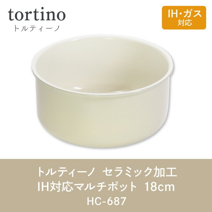 トルティーノ セラミック加工 IH対応 マルチポット 18cm HC-687 パール金属 IH ガス ガス火 オーブン 対応 取っ手無し 片手鍋 ミルクパン 省スペース 重ねて収納 収納 キッチン 料理 調理 単品