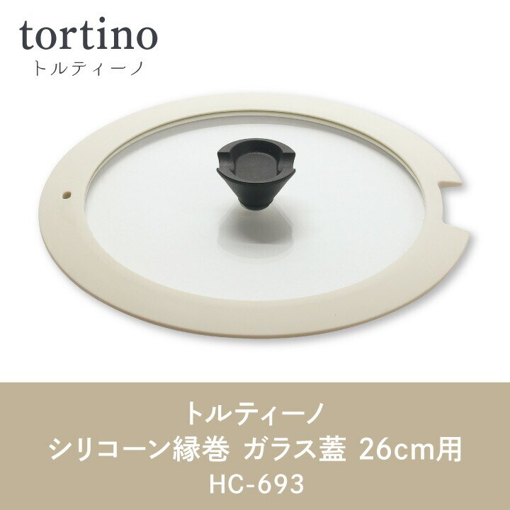 トルティーノ シリコーン縁巻ガラス蓋 26cm用 HC-693 パール金属 シリコーンフチ シリコンフチ 菜箸が置ける 中が見える 様子が分かる 蒸気穴 蒸気口 掴みやすい 傷つけにくい フライパン 鍋