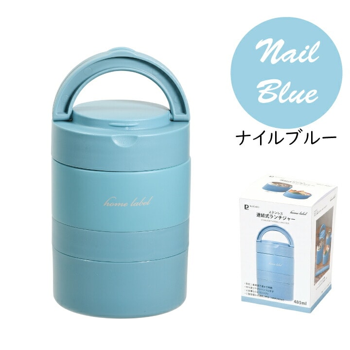 ホームレーベル ステンレス連結式ランチジャー480 パール金属お弁当箱 2段 保温 レンジ対応子供 男子 女子 男性 女性 ランチジャー丼 おしゃれ ステンレス 480ml//ナイルブルー:DC-6011