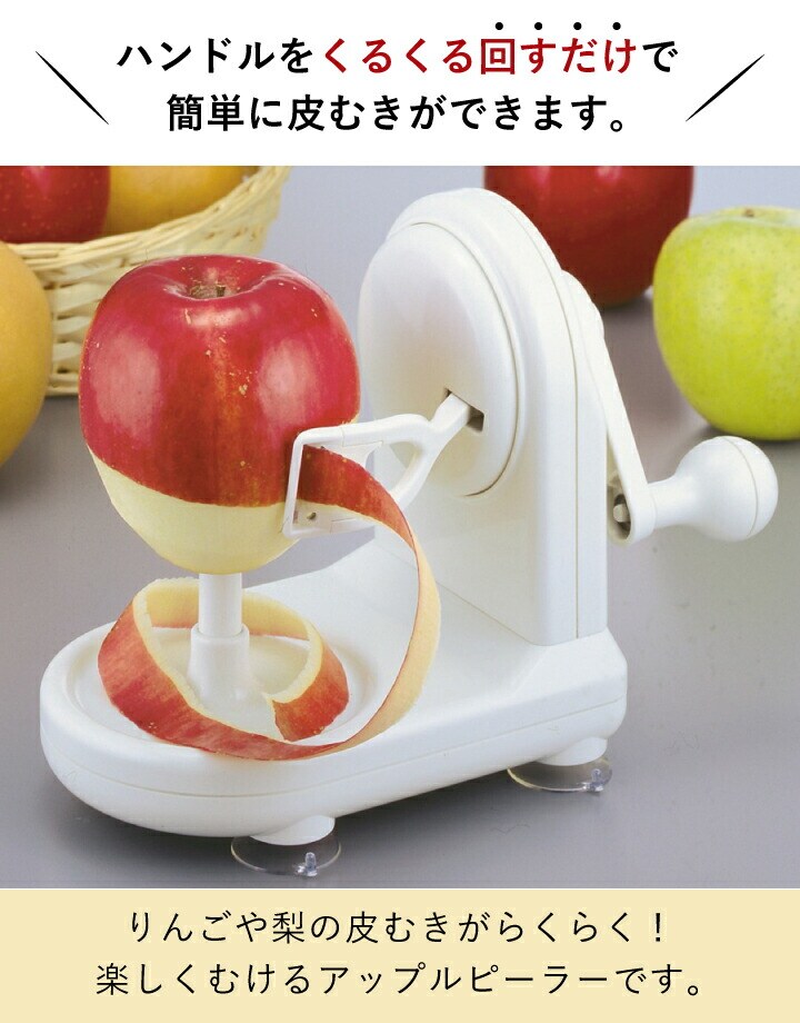 りんごの皮むき りんごの皮むき器 皮剥き器 皮むき機 皮剥き機 回転式皮むき器 回転式ピーラー フルーツピーラー フルーツカッター 果物削り 皮 むく 剥く むき 剥き ハンドル 回転 くるくる クルクル 回すだけ 楽 楽々 らくらく ラクラク かんたん カンタン 素早く 早く 楽しく むける 剥ける 楽しめる 手軽 気軽 安全 安心 子供 子ども こども 一緒に お手伝い 初心者 包丁 苦手 固定 吸盤 グラグラしない グラつかない ズレない キッチン 台所 リビング 居間 ダイニング 食卓 キッチングッズ キッチン用品 便利グッズ 便利グッズ すりりんご すりおろし ジャム コンポート アップルパイ スイーツ デザート お菓子 下ごしらえ 大量消費 大量 いっぱい 果物 フルーツ 野菜 栄養 ビタミン シンプル ホワイト 白 プレゼント ギフト 贈り物 ラッピング無料 包装無料 御祝い お祝い お返し パール Pearl PEARL pearl