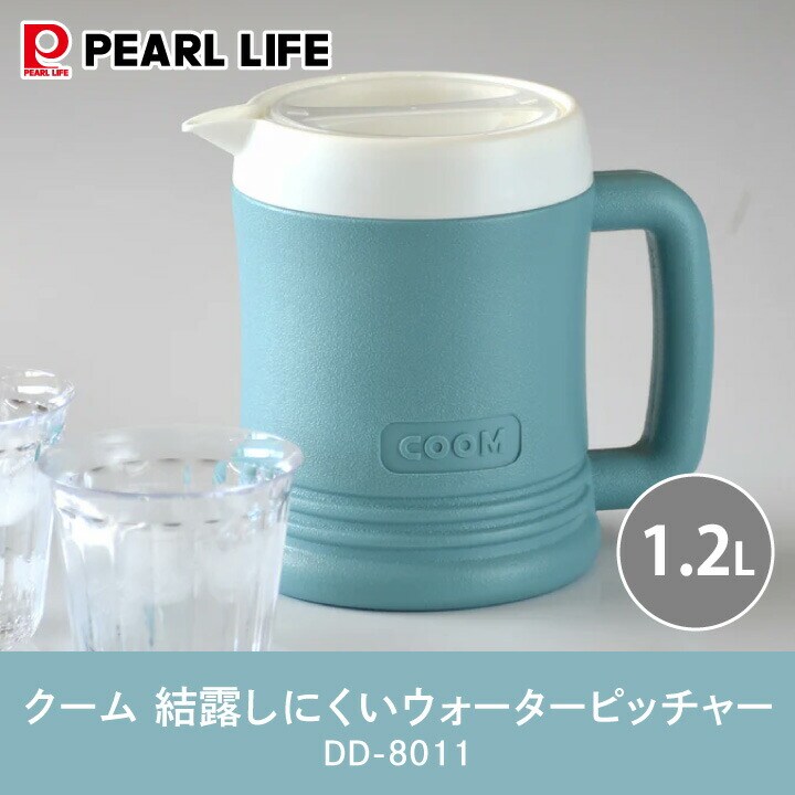 クーム 結露しにくいウォーターピッチャー 1.2L DD-8011 パール金属 大容量 1200ml 冷水筒 冷水専用 二重構造 フタ 取っ手 ハンドル 広口径 飲み物 お茶 麦茶 お冷 卓上 軽量 青 洗いやすい 熱中症対策