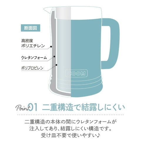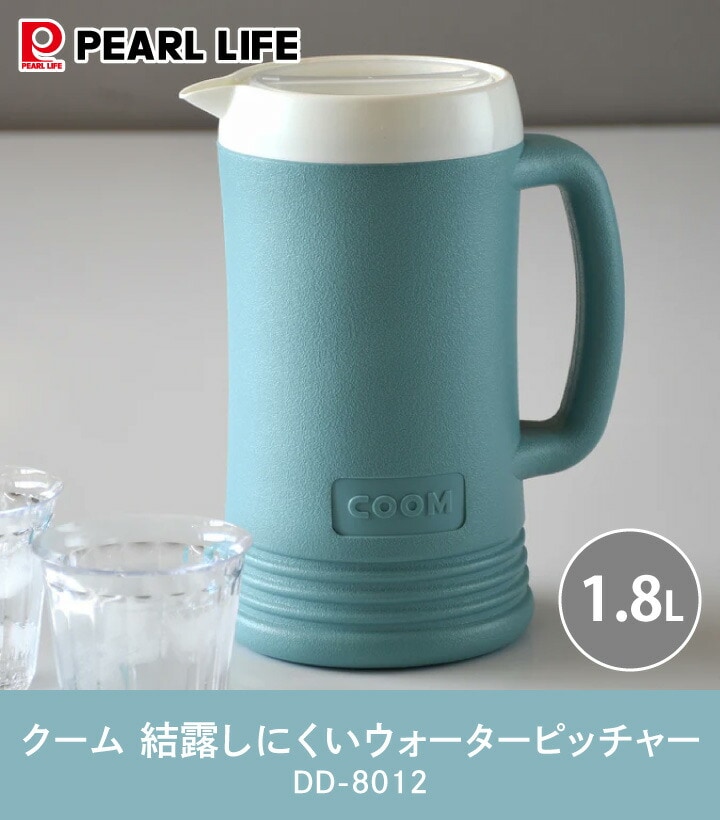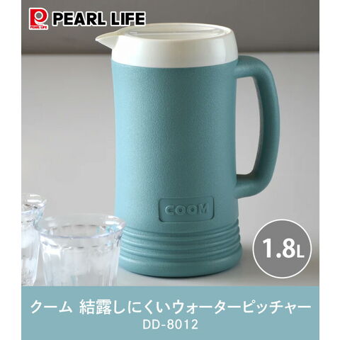 クーム 結露しにくいウォーターピッチャー 1.8L DD-8012 パール金属 大容量 1800ml 冷水筒 冷水専用 二重構造 フタ 取っ手 ハンドル 広口径 飲み物 お茶 麦茶 お冷 卓上 軽量 青 洗いやすい 熱中症対策
