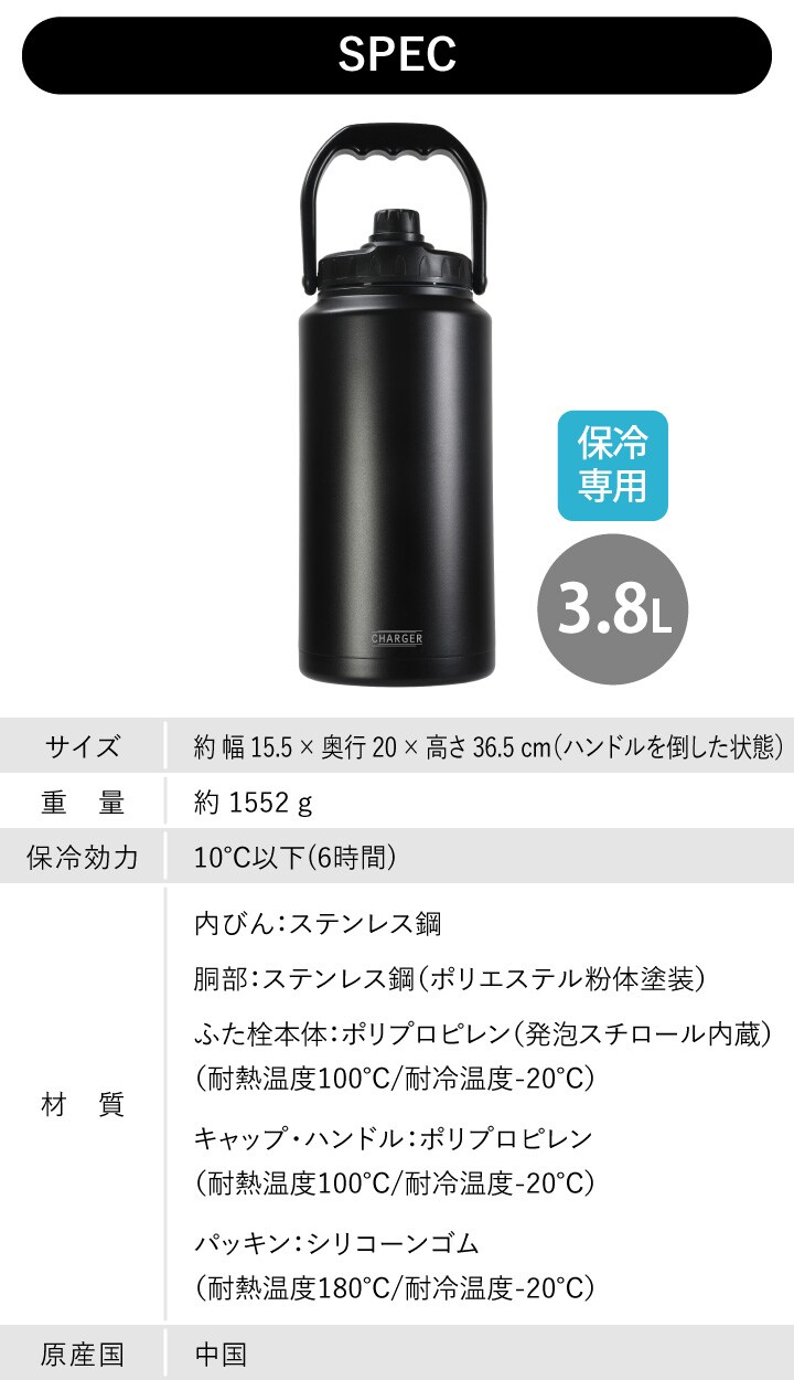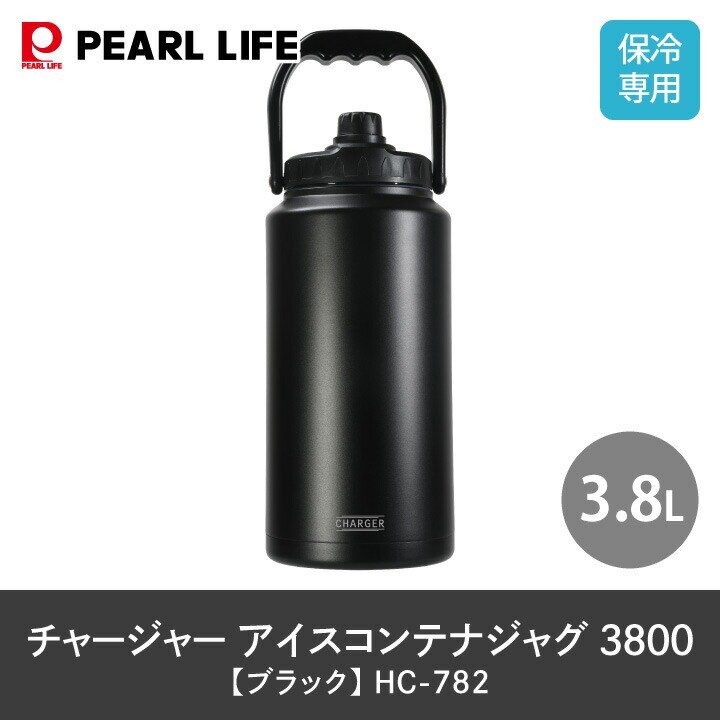 チャージャー アイスコンテナジャグ 3800 ブラック HC-782 パール金属 3.8L 保冷専用 大容量 水筒 直飲み 水分補給 保冷 氷 真空断熱 アイスコンテナ 大口径 アウトドア スポーツ 熱中症対策 持ち運び ウォータージャック