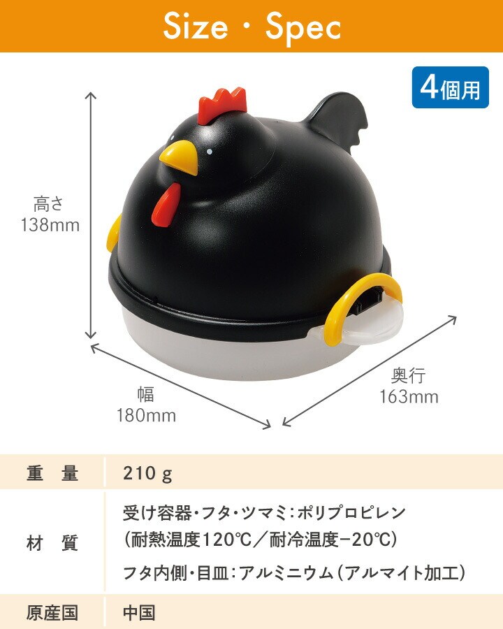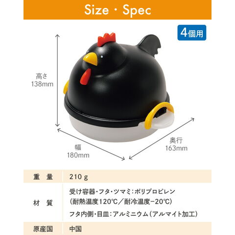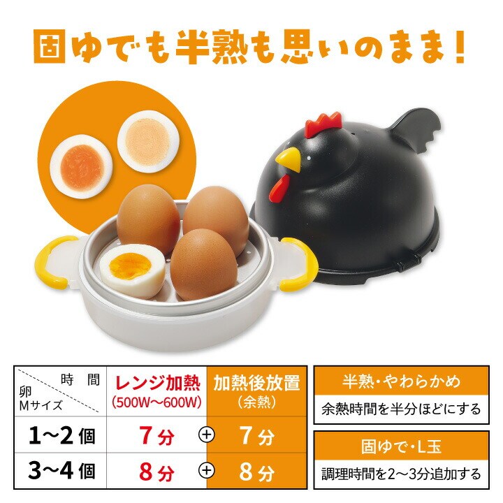 ゆでたまご ゆで玉子 茹で玉子 茹でたまご 半熟 固ゆで 固茹で かたゆで やわらかめ 柔らかめ Mサイズ M M Lサイズ L L L玉 チキン ニワトリ にわとり にわとり型 鶏 ブラック 黒 限定カラー 1個 2個 3個 4個 4個 4つ 4つ 電子レンジ レンジ レンジでらくチン! レンジでらくちん マイクロ波 ナチュラル 可愛い かわいい カワイイ デザイン 映える 調理 料理 キッチン 台所 用品 器具 グッズ 新生活 一人暮らし 家族 家庭 ご飯 ごはん おかず 作る 食事 自炊 炊事 メニュー 献立 朝食 夕食 朝 夕 晩 ご飯 お弁当 弁当 ランチ サラダ サンドイッチ エッグ 肉 魚 野菜 カレー 煮物 麺 プレゼント ギフト 贈り物 贈りもの 誕生日 母の日 父の日 お祝い お返し 結婚 引っ越し 新築 cc-1149 CC1149 CC-1149 CC1149 PEARL pearl パール パールライフ