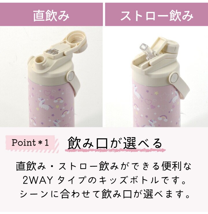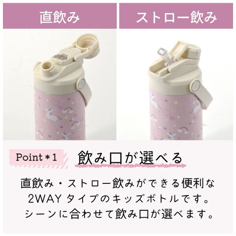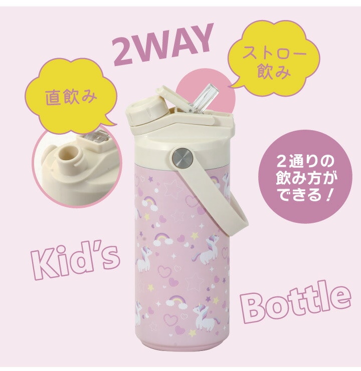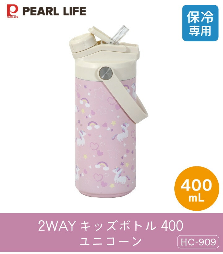 2WAY キッズボトル 400 ユニコーン HC-909 パール金属 400ml 水筒 直飲み ストロー ステンレスボトル 0.4L 保冷専用 広口径 お手入れ簡単 メルヘン 幼児 園児 小学生 子ども キッズ ツーウェイ