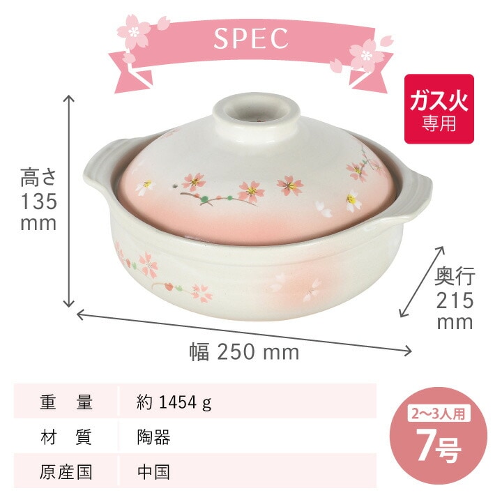 土鍋 7号 桜日和 L-1973 パール金属鍋 卓上鍋 2~3人用 ガス火専用