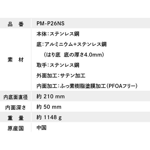 マイヤー ホワイトスチール フライパン 26cm PM-P26NS MEYER ガス 直火 IH コンロ ステンレス 軽量 ふっ素樹脂加工 スタイリッシュ こびりつきにくい 使いやすい 焦げ付きにくい おしゃれ ギフト