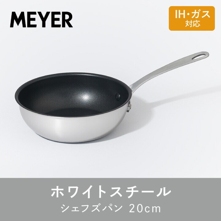マイヤー ホワイトスチール シェフズパン 20cm PM-CP20NS MEYER ガス 直火 IH コンロ ステンレス 軽量 フライパン ディープパン こびりつきにくい 使いやすい スタイリッシュ おしゃれ ギフト