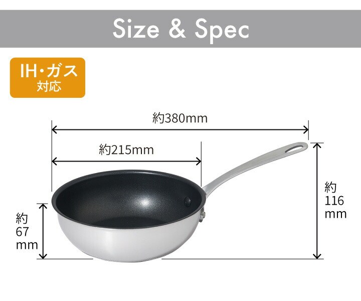 ●内面はふっ素樹脂加工が施されているため、焦げ付きにくく