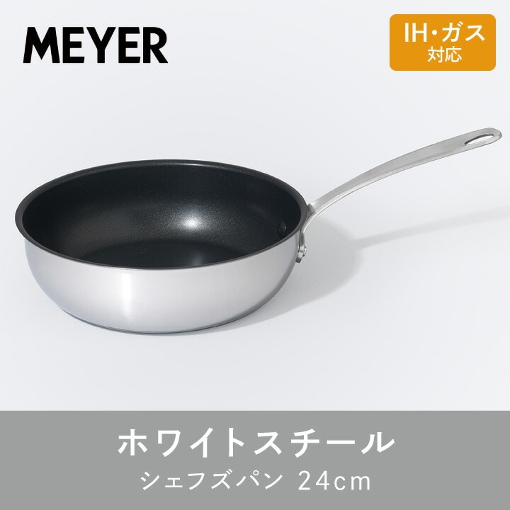 マイヤー ホワイトスチール シェフズパン 24cm PM-CP24NS MEYER ガス 直火 IH コンロ ステンレス 軽量 フライパン ディープパン こびりつきにくい 使いやすい スタイリッシュ おしゃれ ギフト