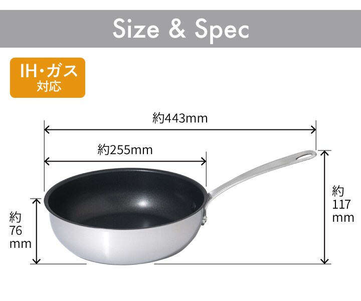●内面はふっ素樹脂加工が施されているため、焦げ付きにくく
