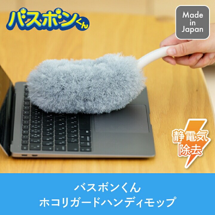 バスボンくん ホコリガードハンディモップ 山崎産業 日本製 埃取り ホコリ取り モップ 掃除 はたき ハンドモップ モップ 静電気除去 再付着軽減 掃除道具 掃除グッズ 除電 抗菌 抗菌加工 照明 カー用品 パソコン デスク テレビ 収納ケース