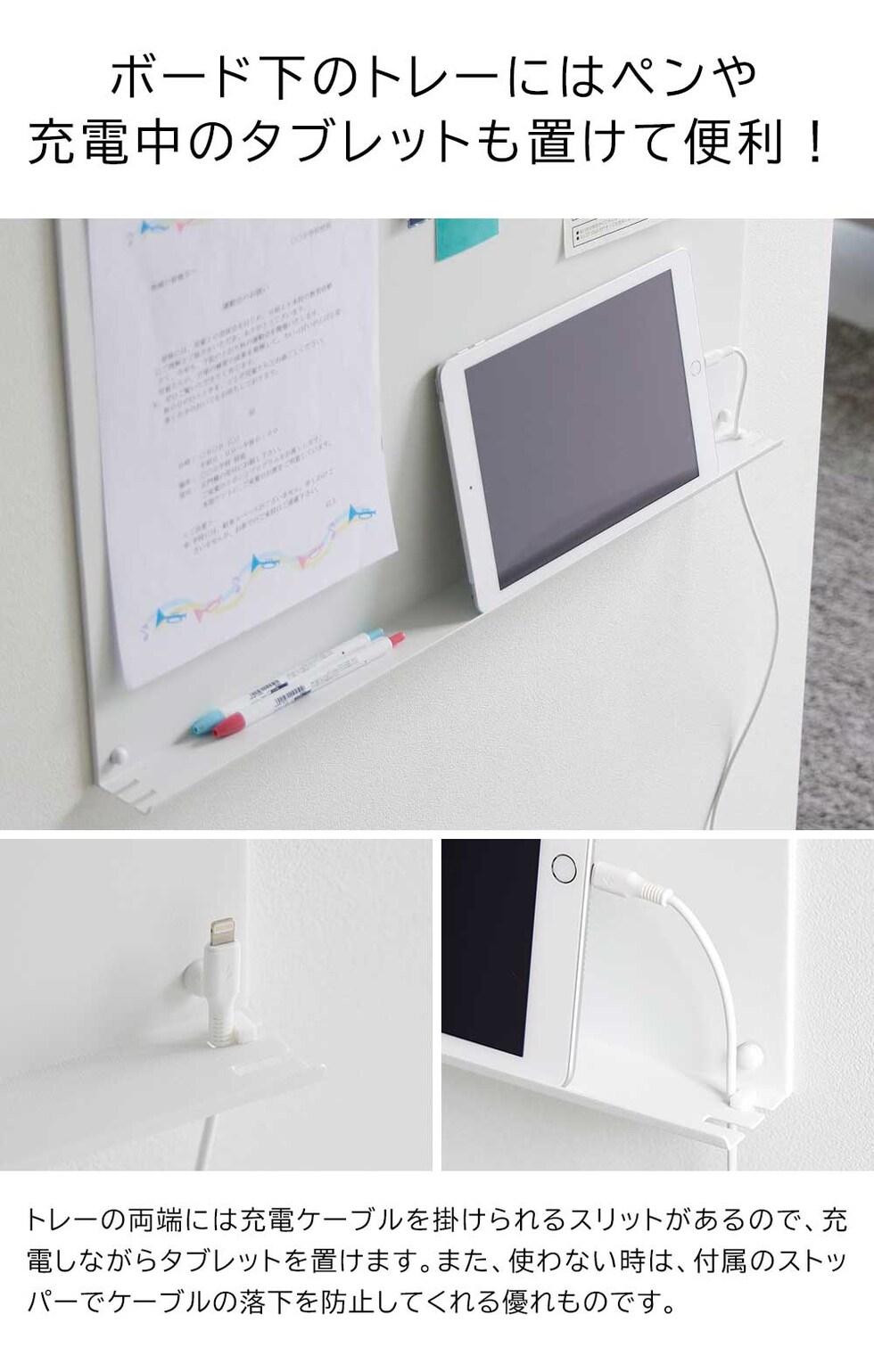 ボード下にはトレーがあり、ペンやリモコンなどを置けます。