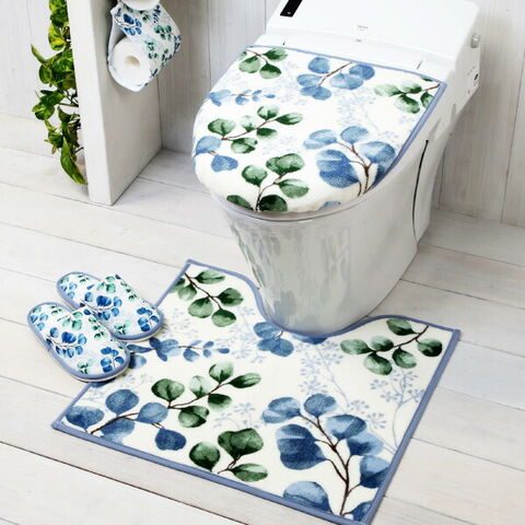 トイレ2点セット トイレマット + 兼用フタカバー ヨコズナ兼用タイプ U型 O型 洗浄 暖房 簡単装着洗える 丸洗い可能 トイレマット トイレカバートイレセット 2点セット おしゃれ かわいい//ユーカリ