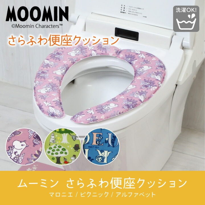 ムーミン さらふわ便座クッション ヨコズナ 洗浄暖房型 O型 U型 便座シート 便座カバー 取り付け簡単 吸着 置くだけ 厚め 15mm トイレ クッション 極厚 柔らか 節電 エコ 繰り返し使用可能 洗える ふんわり かわいい//マロニエ:852410