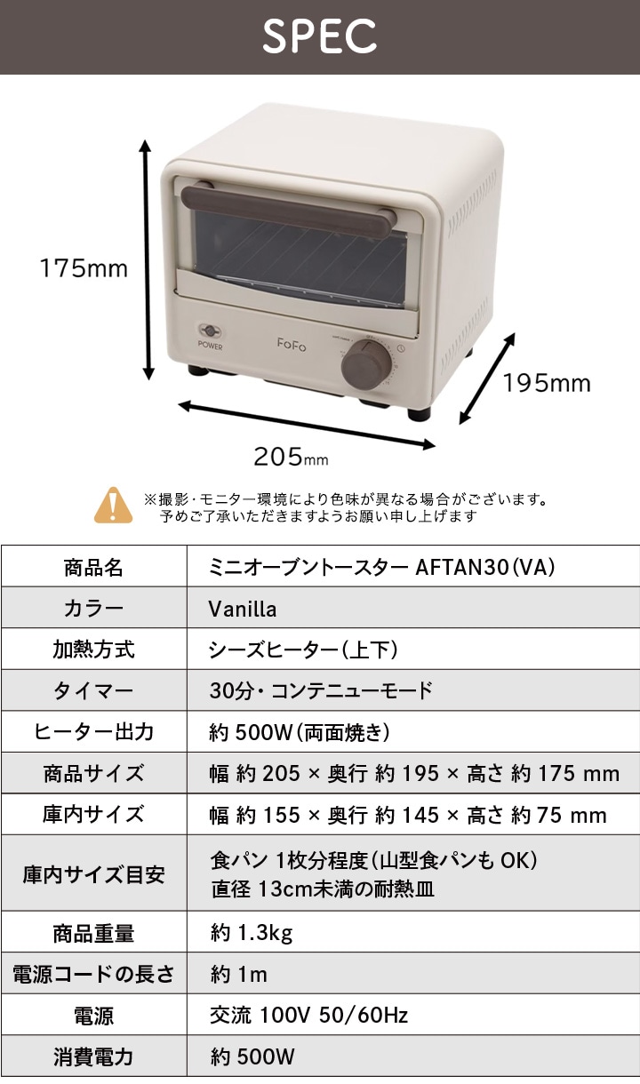 ワンダーシェフ ミニオーブントースター 3L AFTAN30(VA) Vanilla ホワイト 1~2人用 超小型 コンパクト 一人暮らし
