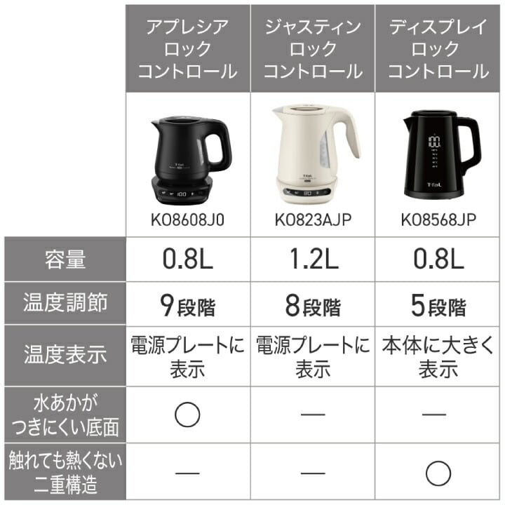 【エコバッグプレゼント】 【カップスーププレゼント】ティファール アプレシア ロック コントロール ブラック 0.8L KO8608J0 ケトル 電気 おしゃれ