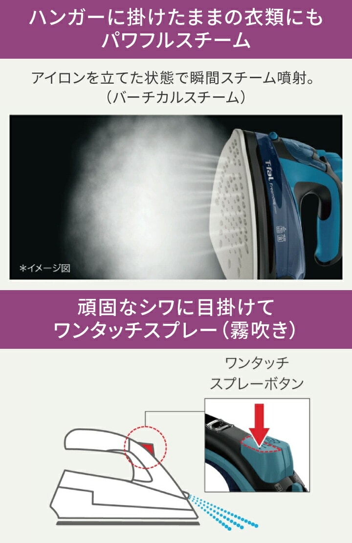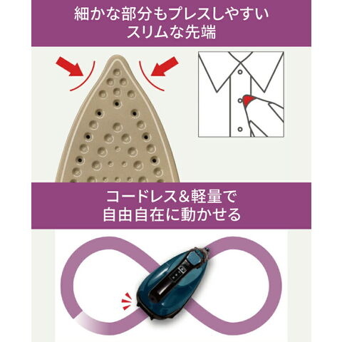 ●軽くてコンパクトなのに、パワフルなジェットスチーム。 ●ティファール最軽量・最小の"ミニ"コードレスアイロン。 ●コードレスなので使い心地軽やか、自由自在なかけ心地。 ●耐久性が高くすべりの良い、チタンかけ面。 ●頑固なシワもピンポイントで集中ケア。 ●ハンガーに掛けたままの衣類にも、パワフルスチーム。 ●素材に合わせて選べる3段階のかけ面温度設定。 ●細かな部分もプレスしやすいスリムな先端。 ●かけ面からの水滴を防ぐ水漏れ防止。 ●給排水に便利な取り外せる水タンク。 |