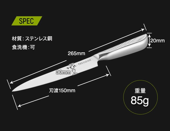 ●ティファール最高ランクのキッチンナイフ「プレシジョン」 「鋭い角度(22°)の刃」と「アイスハードニングテクノロジー」が精巧で鋭いカットを生み出します。 ●高い耐久性を兼ね備えたドイツ製の鋼を採用 鋼を高温で熱処理した後、急冷するアイスハードニングテクノロジーにより、鋼の硬度が増し、鋭い切れ味が持続します。 ●継ぎ目のないオールインワンステンレス 刃と柄は継ぎ目のないオールインワンステンレスで、お手入れがしやすく清潔にお使いいただけます。 ●軽くて握りやすいハンドル 人間工学に基づいた最適な重心バランスで、余計 な力をかけずに食材を切ることができるので、疲れず使い続けることができます。 ●食洗機対応 ●10年保証付き! |
