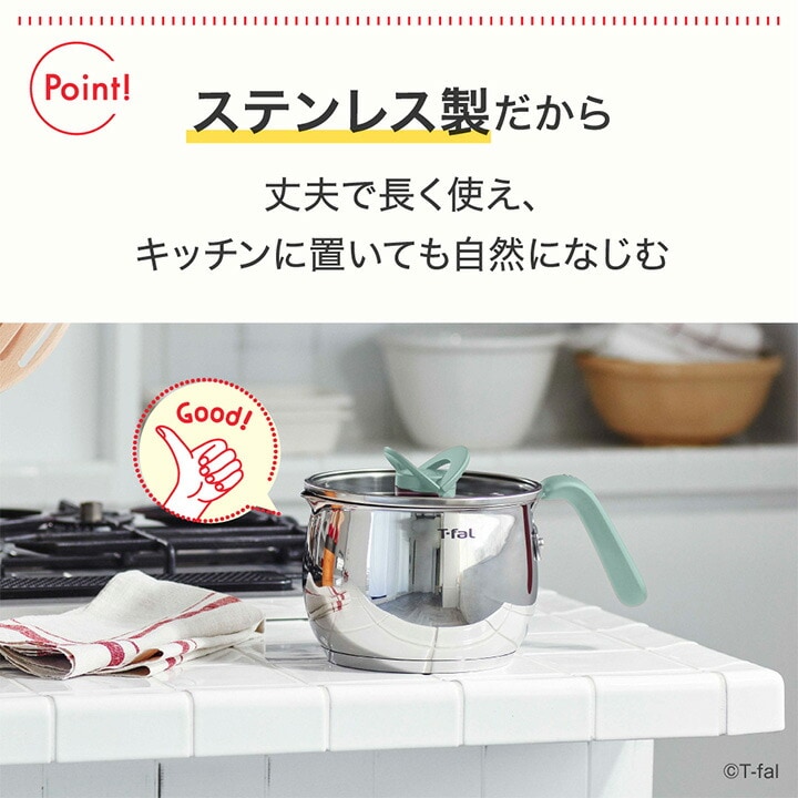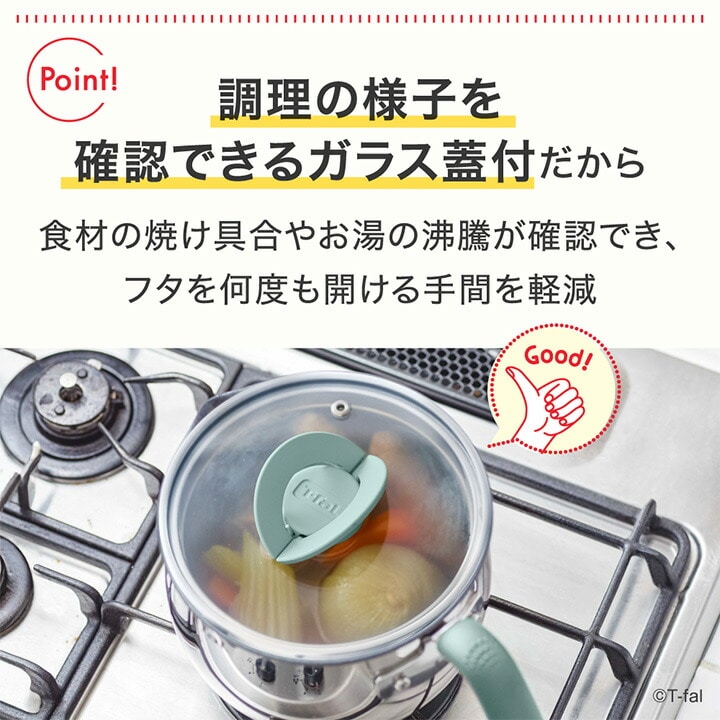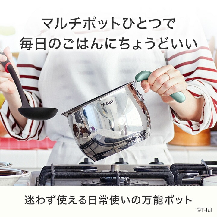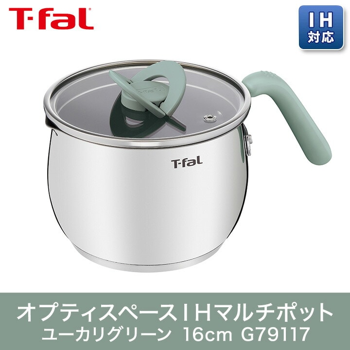 ティファール オプティスペースIHステンレスマルチポット ユーカリグリーン 16cm G79117 鍋 IH対応 片手鍋 小型 ガラス蓋 こびりつきにくい ステンレス