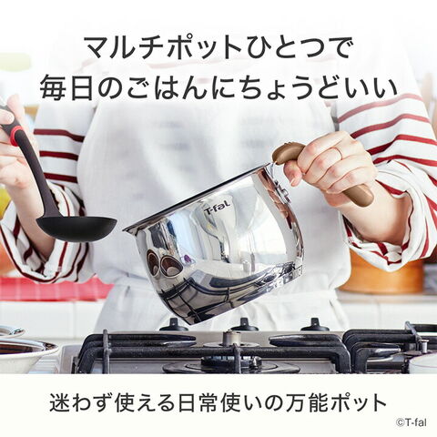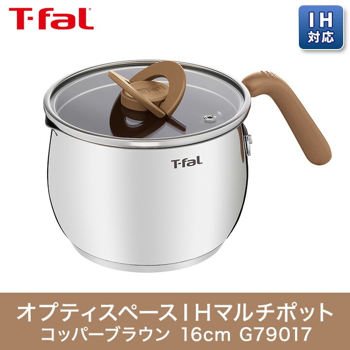 ティファール オプティスペースIHステンレスマルチポット コッパーブラウン 16cm G79017 鍋 IH対応 片手鍋 小型 ガラス蓋 こびりつきにくい
