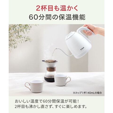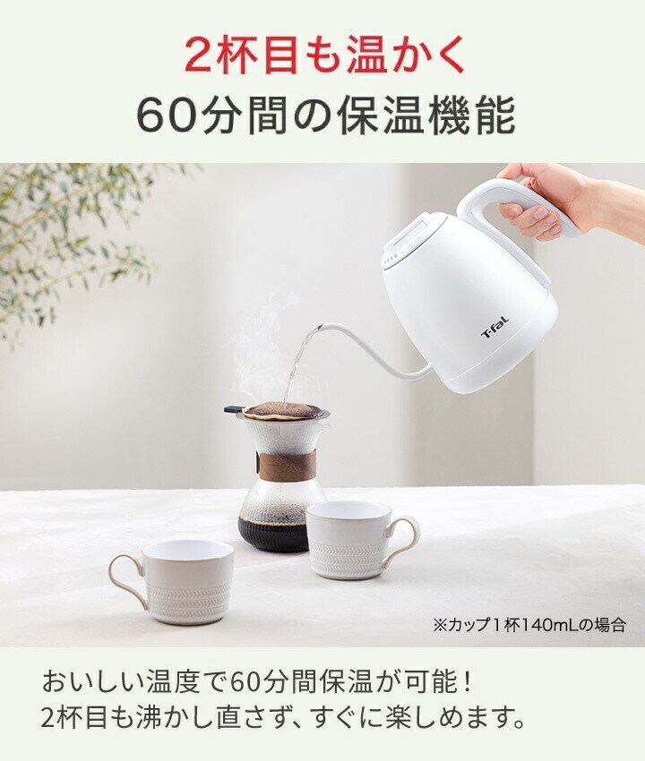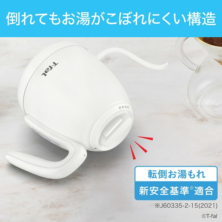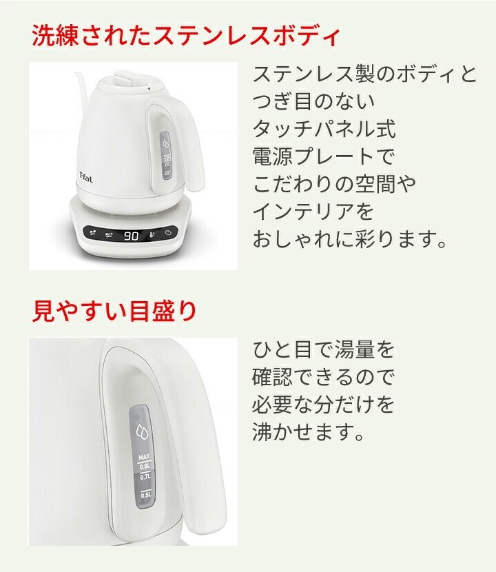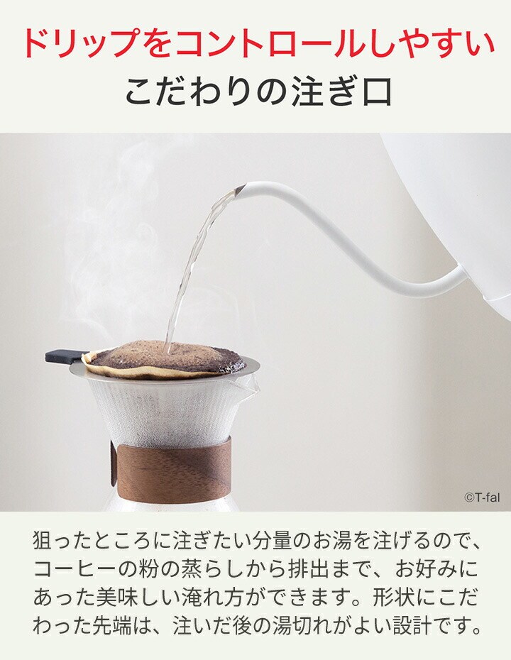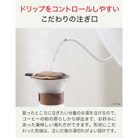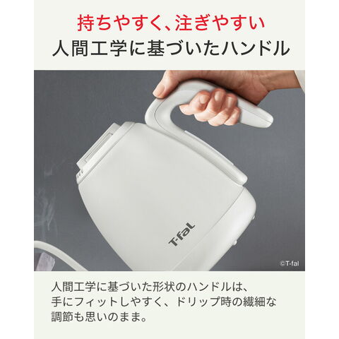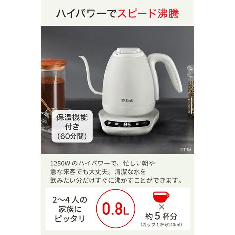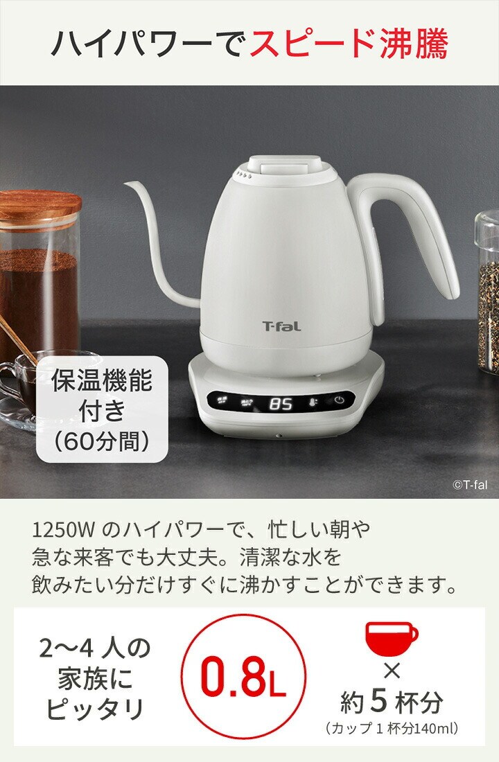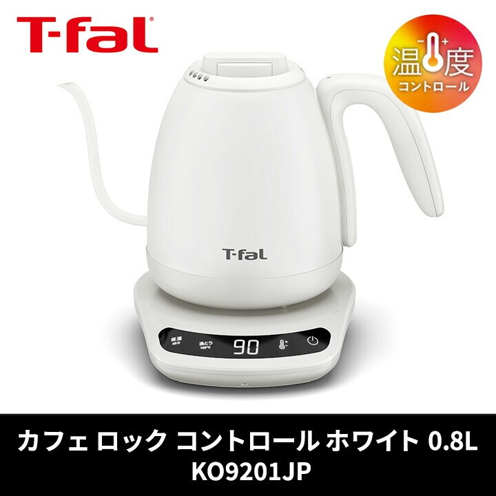 ティファール 電気ケトル カフェ ロック コントロール 0.8L KO9201JP ホワイト ケトル ポット 空焚き防止 オートオフ お湯漏れロック 軽い 片手 持ちやすい 注ぎやすい お湯 沸騰 湯量 温度設定 8段階 ドリップ 保温 800ml T-fal t-fal