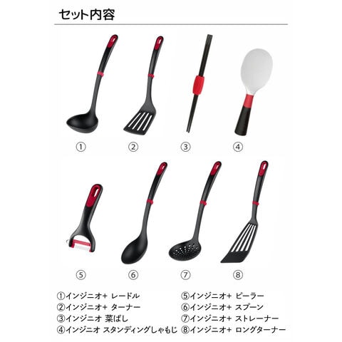 【くらし屋オリジナル】ティファール キッチンツール インジニオ 8点セットレードル おたま ターナー フライ返し 菜箸 菜ばし しゃもじピーラー 皮むき スプーン 匙 ストレーナー 穴あきおたま ロングデザイン おしゃれ T-fal