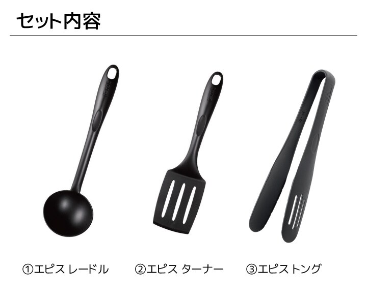 ティファール キッチンツール エピス 3点セットレードル おたま ターナー フライ返し トング 耐熱 温度220℃ 食器洗い機 食洗器 対応 T-fal