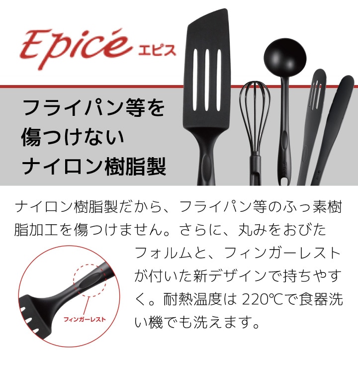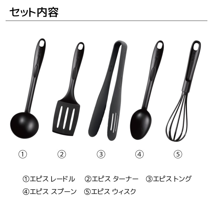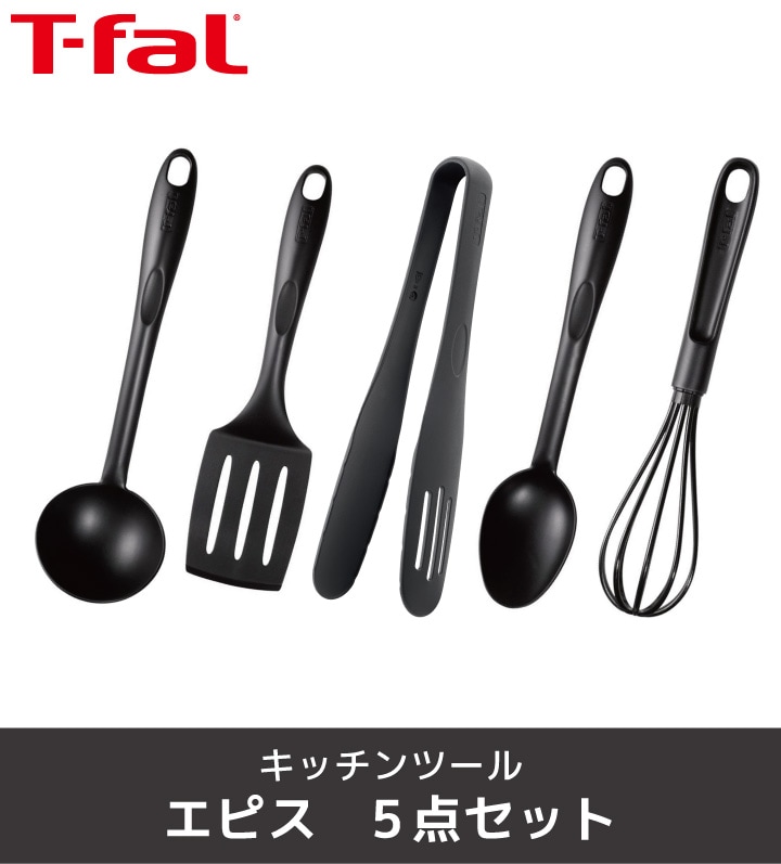 ティファール キッチンツール エピス 5点セットレードル ターナー トング スプーン ウィスク耐熱 温度220℃ 食器洗い機 食洗器 対応 T-fal