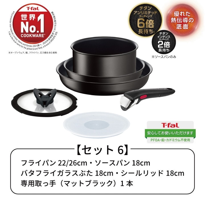 ティファール 鍋 フライパン セット インジニオ・ネオ IHハードチタニウム・アンリミテッド セット6 L38991 【ガス火・IH対応】取っ手のとれるティファール 片手鍋 取っ手 こびりつきにくい 耐久性 長持ち