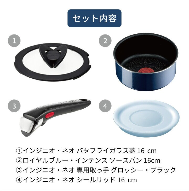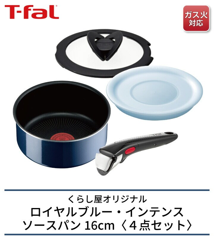 【今なら大幸のすりごまプレゼント】ティファール【くらし屋オリジナル】ロイヤルブルー・インテンス ソースパン16cm 4点セット 【ガス火専用】鍋 片手鍋 セット 深型 ガラス蓋 専用取っ手 取っ手のとれる こびりつきにくい 耐久性 長持ち