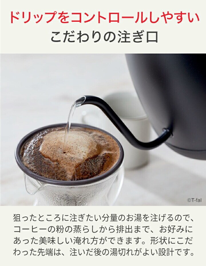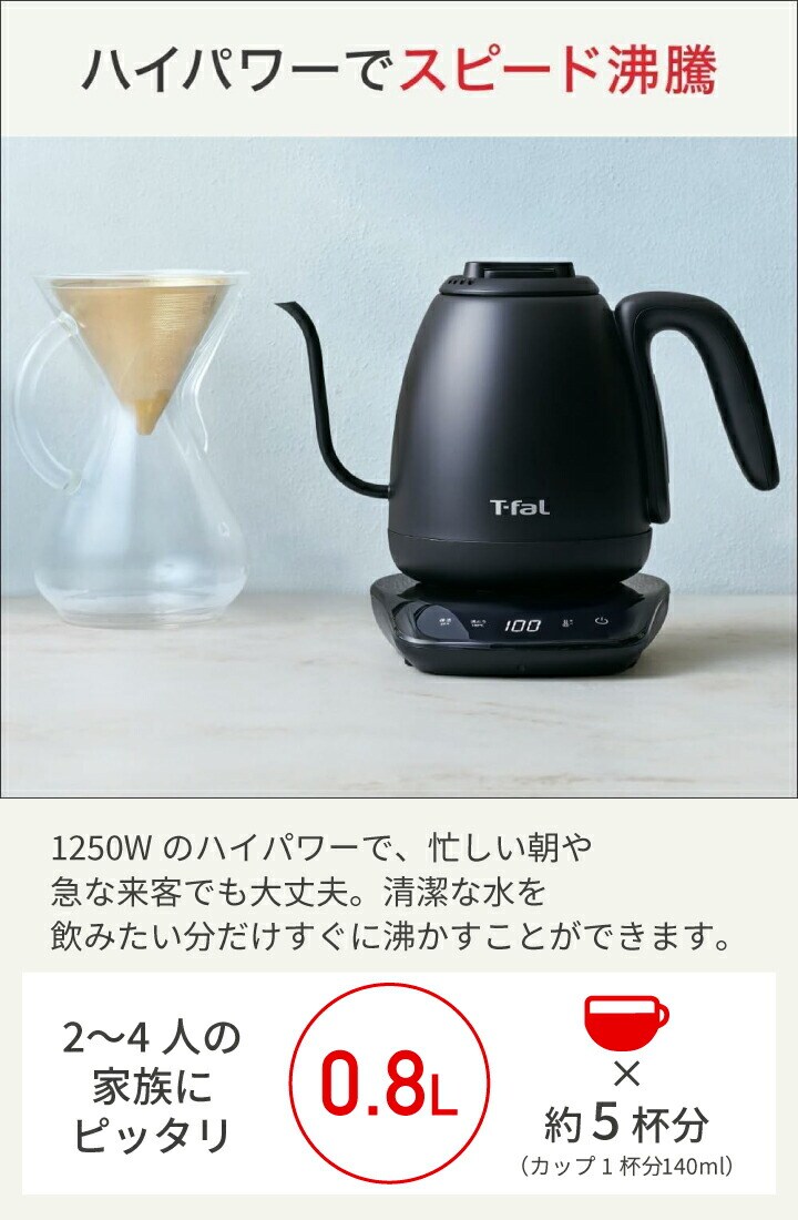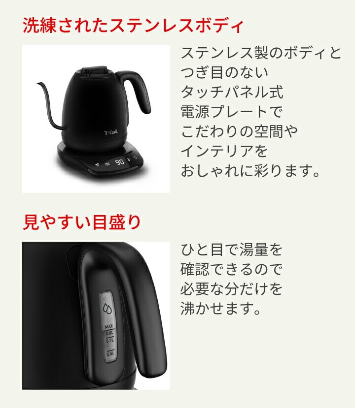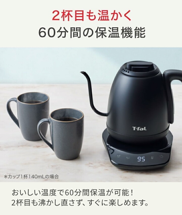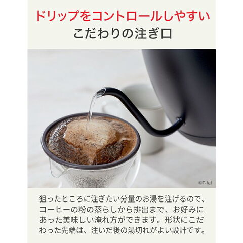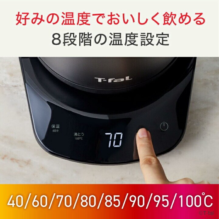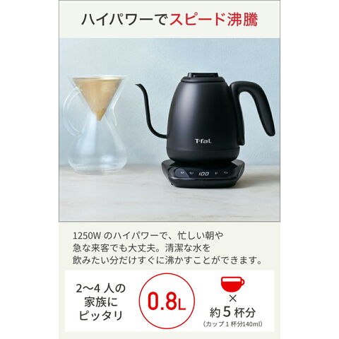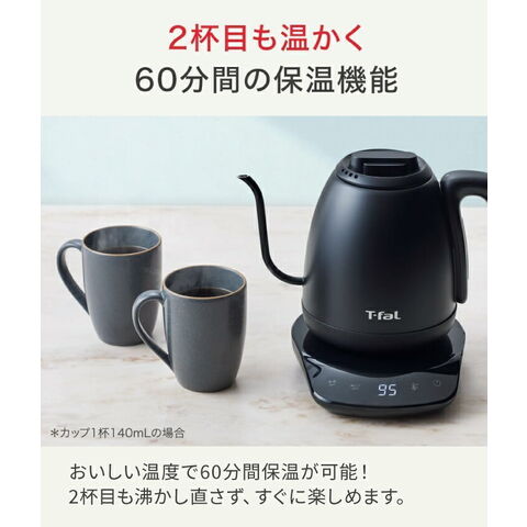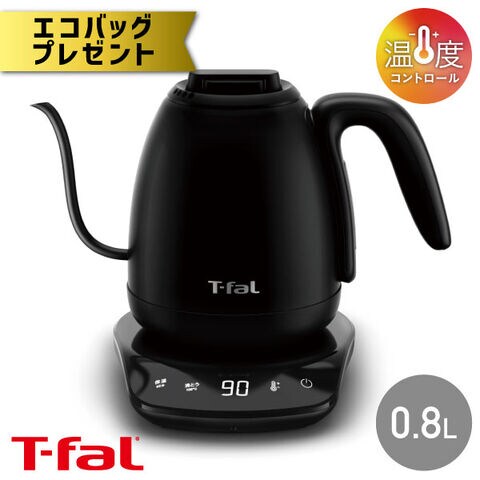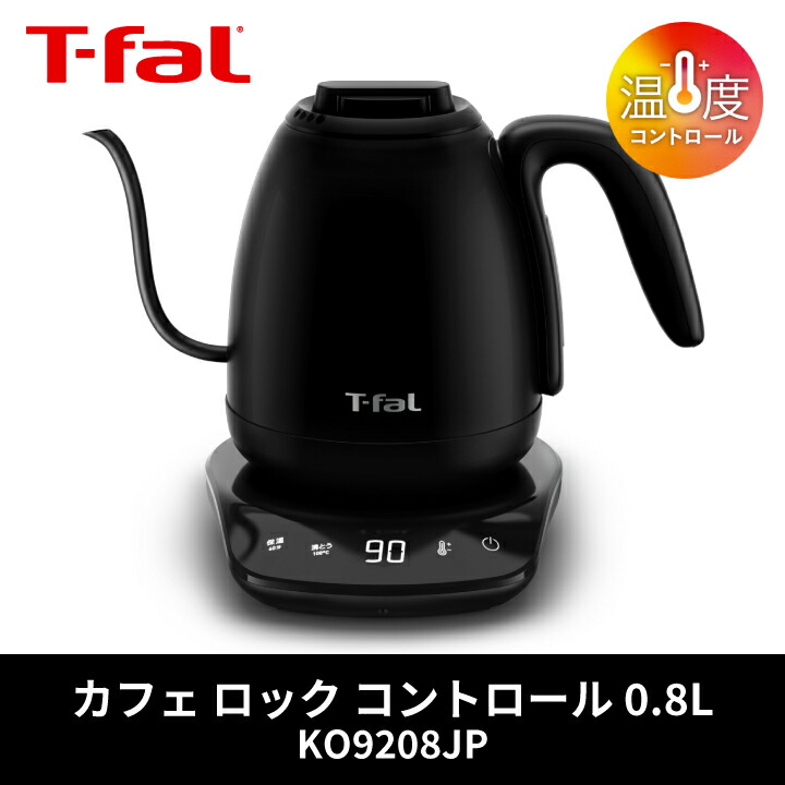 【エコバッグプレゼント】ティファール 電気ケトル カフェ ロック コントロール 0.8L KO9208JP ケトル ポット 空焚き防止 オートオフ 軽い 片手 注ぎやすい お湯 沸騰 湯量 温度設定 8段階 ドリップ 保温 800ml T-fal t-fal