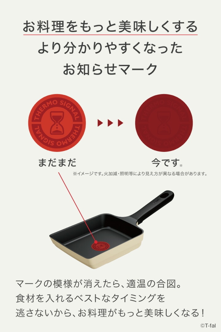●高い耐久性を実現した「チタン・フォース コーティング」で、 使い始めのこびりつきにくさが長く続きます。 ●お知らせマークで調理開始のベストなタイミングをお知らせ。 ●すばやく均一な熱伝導で、食材の旨味を封じ込めます。 ●キッチンを明るくする、おしゃれなバニラベージュ。 |