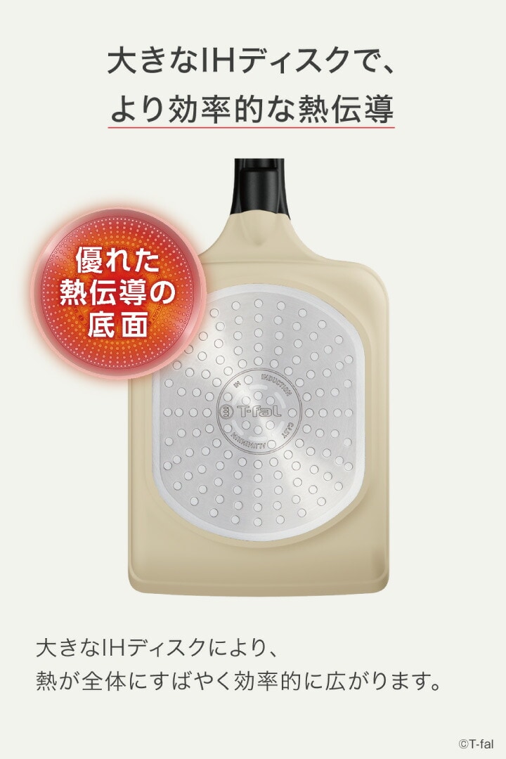 ティファール ガス・IH対応 IHチタン・エクセレンス バニラベージュ エッグロースター 14×18cm G61618 ガス火対応 IH対応 鍋 卵焼き器 エッグパン 四角 フライパン 丈夫 長持ち 耐久性 熱伝導性 こびりつきにくい 取っ手付き T-fal Tfal