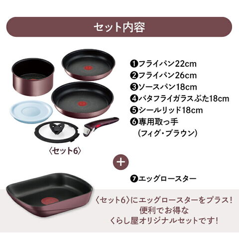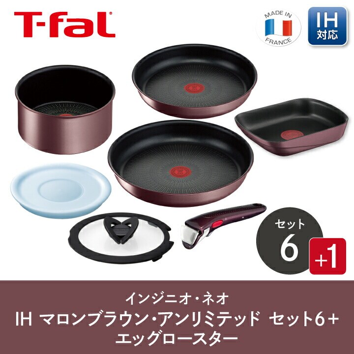 【くらし屋オリジナル7点セット】ティファール ガス・IH対応 インジニオ・ネオ IHマロンブラウン・アンリミテッド セット6 L38593 + エッグロースター L86018 鍋 フライパン ふた 取っ手 一式 ギフト T-fal