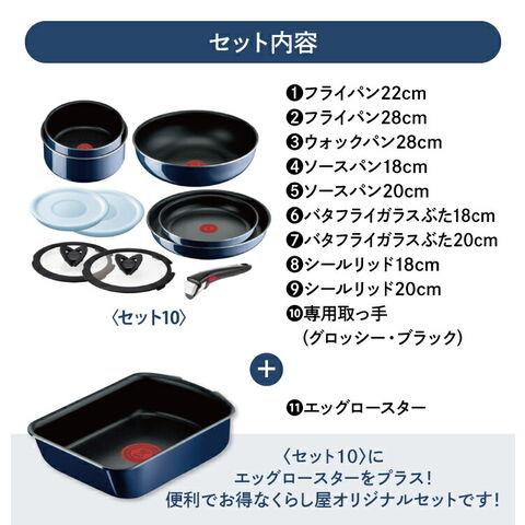 【くらし屋オリジナル11点セット】ティファール ガス火専用 インジニオ・ネオ ロイヤルブルー・インテンス セット10 L43791 + エッグロースター L43718 鍋 フライパンセット エッグパン ガス火 コンロ 直火 取っ手の取れる 一式 ギフト T-fal