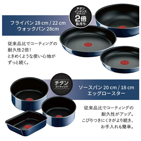 ・フライパン 22cm(チタン・インテンス コーティング)…1個 ・フライパン 28cm(チタン・インテンス コーティング)…1個 ・ウォックパン 28cm(チタン・インテンス コーティング)…1個 ・ソースパン 18cm(チタン・コーティング)…1個 ・ソースパン 20cm(チタン・コーティング)…1個 ・エッグロースター(チタン・コーティング)…1個 ・バタフライガラスぶた 18cm…1個 ・バタフライガラスぶた 20cm…1個 ・シールリッド 18cm…1個 ・シールリッド 20cm…1個 ・専用取っ手(グロッシー・ブラック)…1本 |