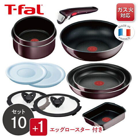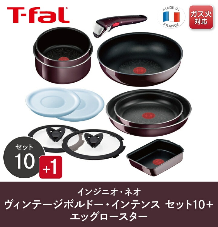 【くらし屋オリジナル11点セット】ティファール ガス火専用 インジニオ・ネオ ヴィンテージボルドー・インテンス セット10 L43992 + エッグロースター L43918 鍋 フライパンセット エッグパン ガス火 コンロ 直火 取っ手の取れる 一式 ギフト T-fal