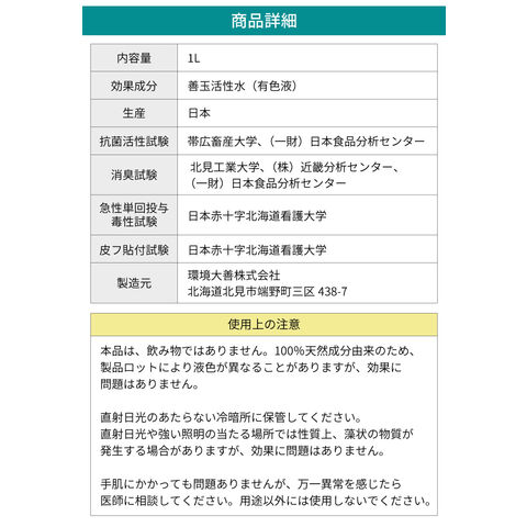 環境微生物群(乳酸菌等)を発行・培養した「善玉活性水」から生まれたバイオ消臭液です。